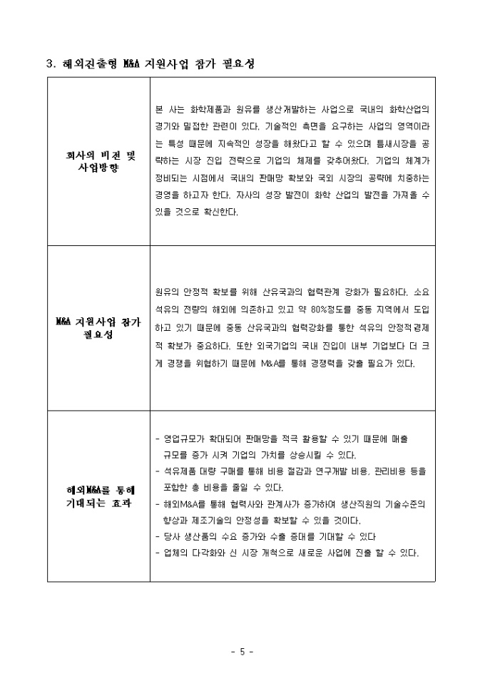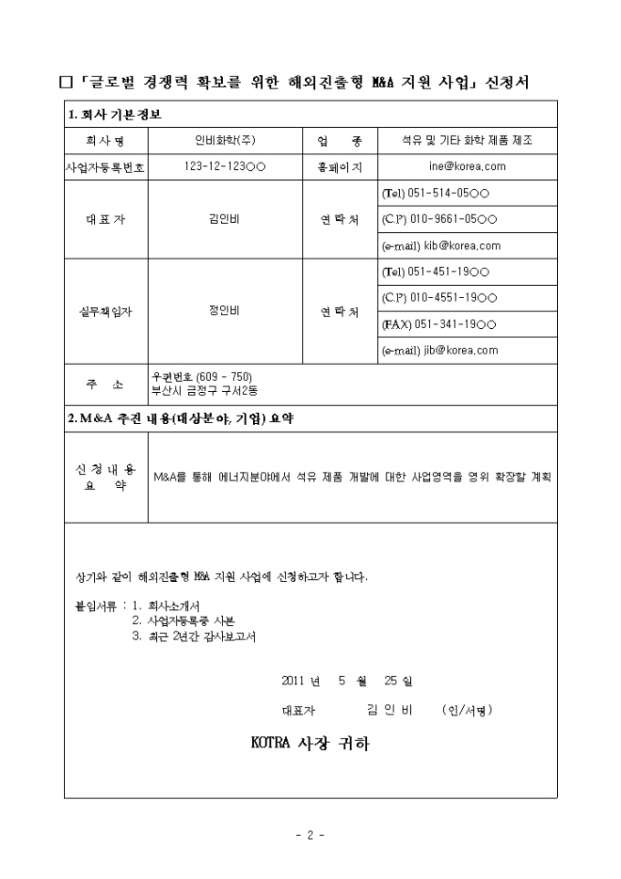 중소·중견기업의 글로벌 경쟁력 강화를 위한 해외진출형 M&A 지원 사업계획서 샘플 |
