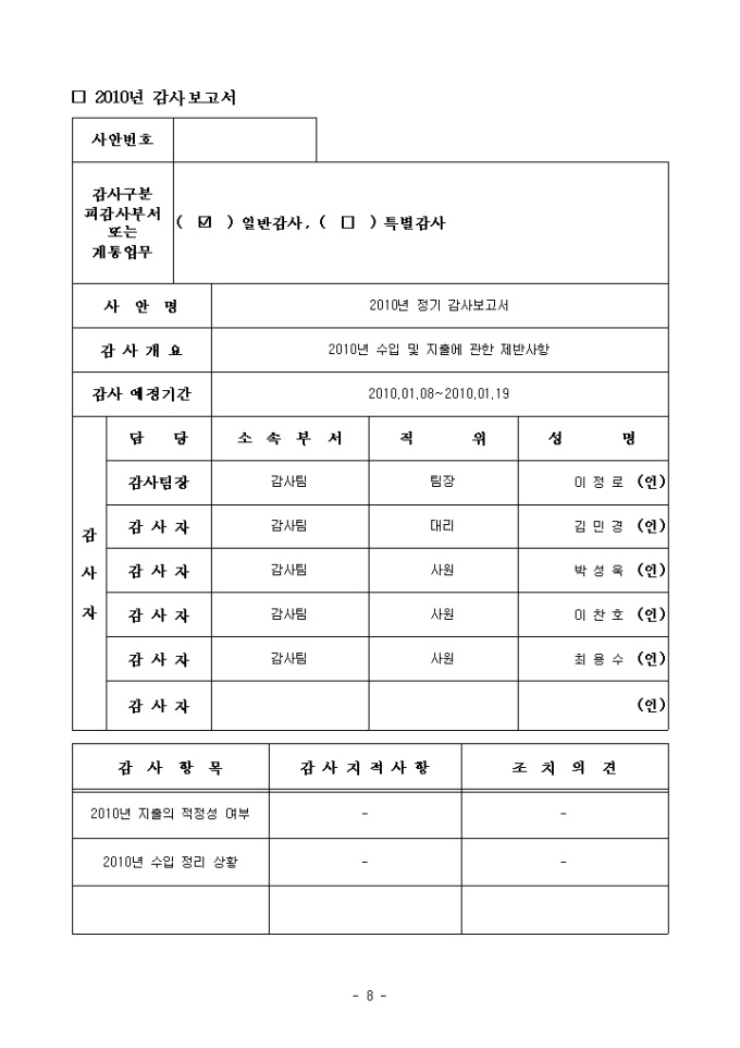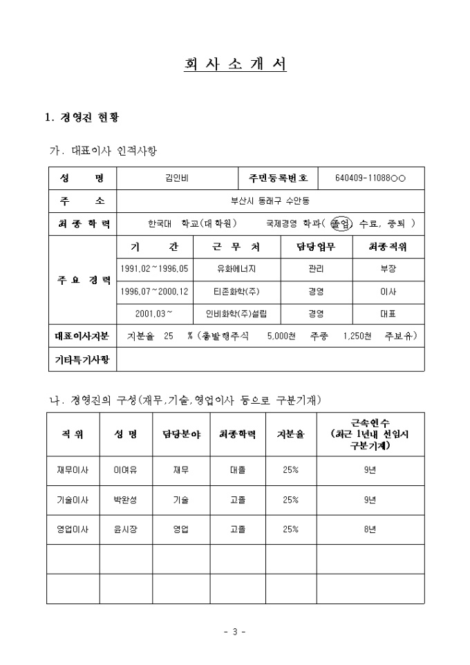 ○ 본 샘플에 사용된 모든 명칭 및 수치는 저작권 보호를 위해 가명처리 및 가상으로 입력되었습니다.