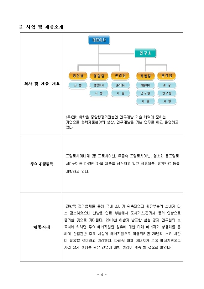 ○ 본 사업계획서 샘플은 제조업(화학) 분야를 기준으로 제작되었습니다.