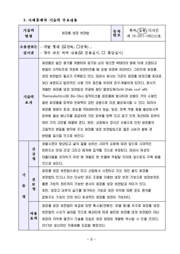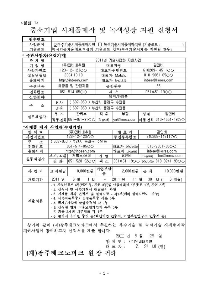 2011년 광주 기술 사업화 지원 사업 계획서 샘플 |