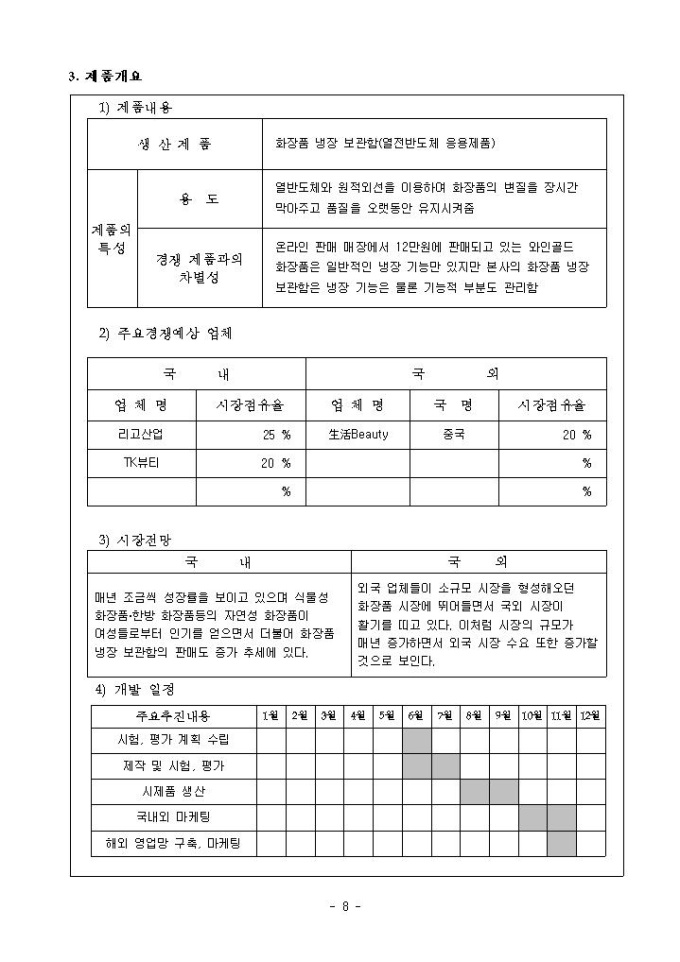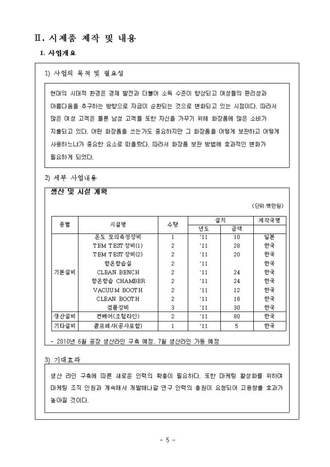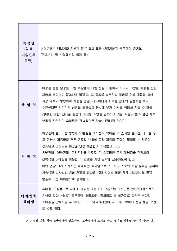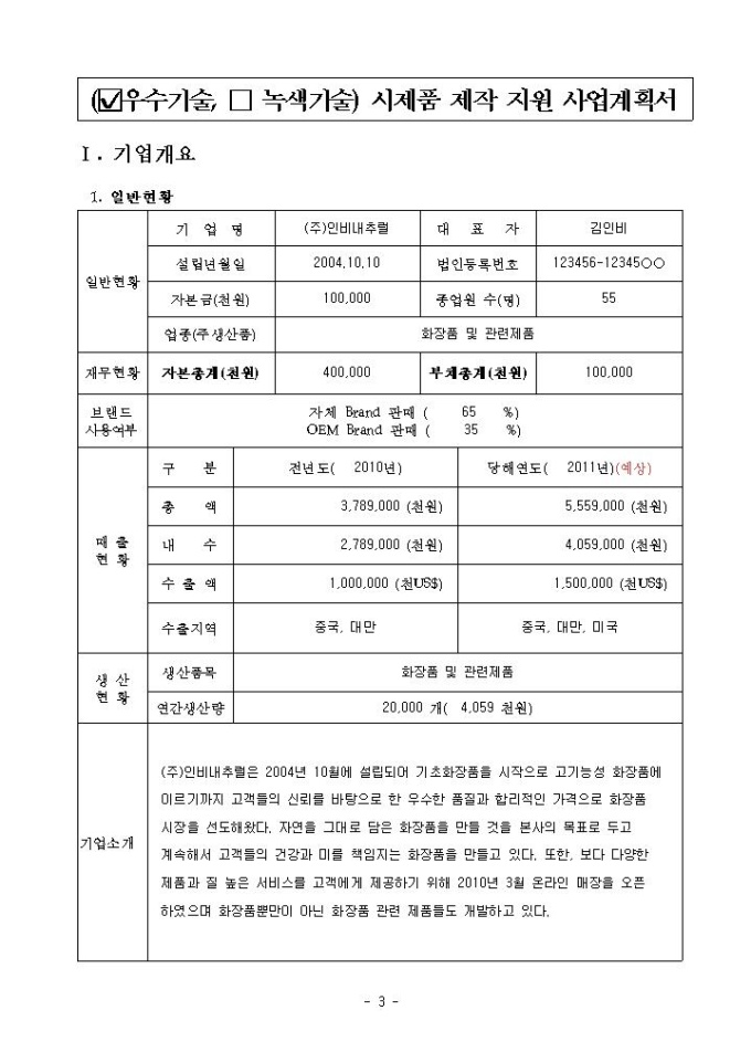 ○ 본 사업계획서 샘플은 제조업(화장품) 분야를 기준으로 제작되었습니다.