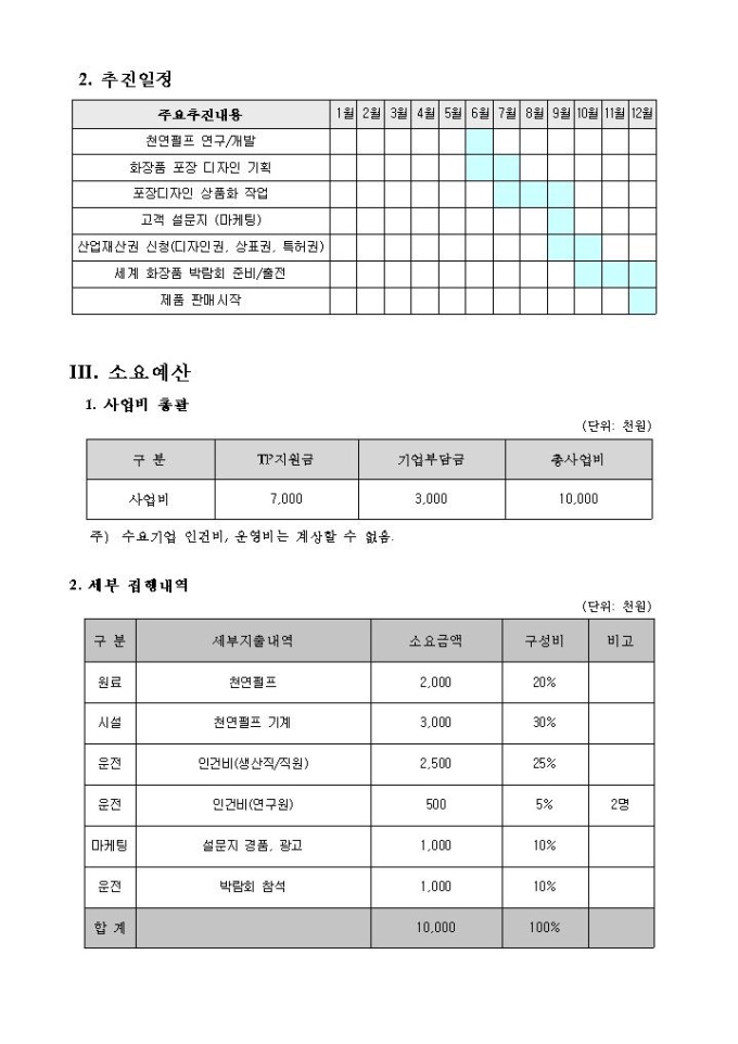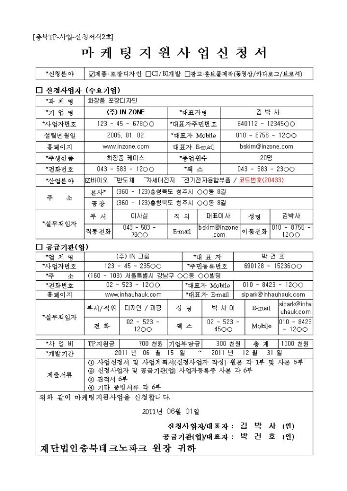 충북 전략산업 통합 마케팅 활성화 사업 계획서 샘플 |