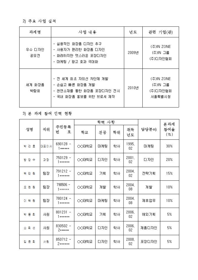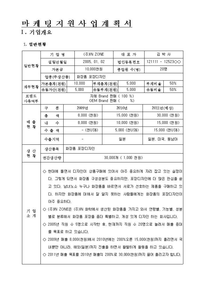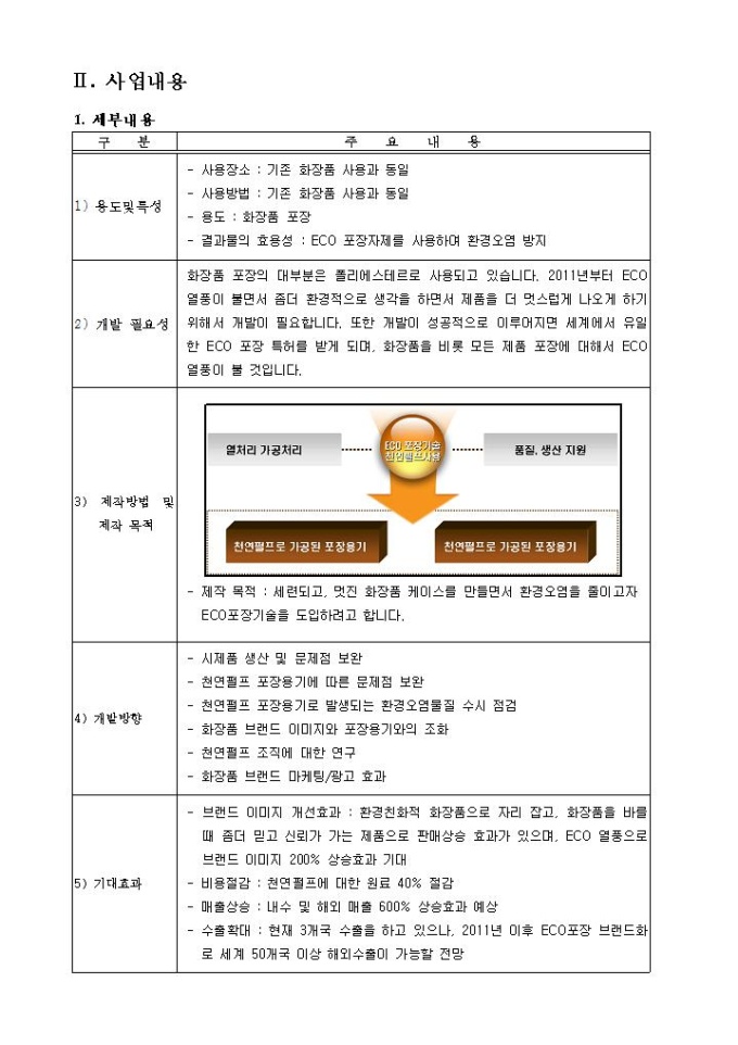 ○ 본 사업계획서 샘플은 제조업(화장품포장) 분야를 기준으로 제작되었습니다.