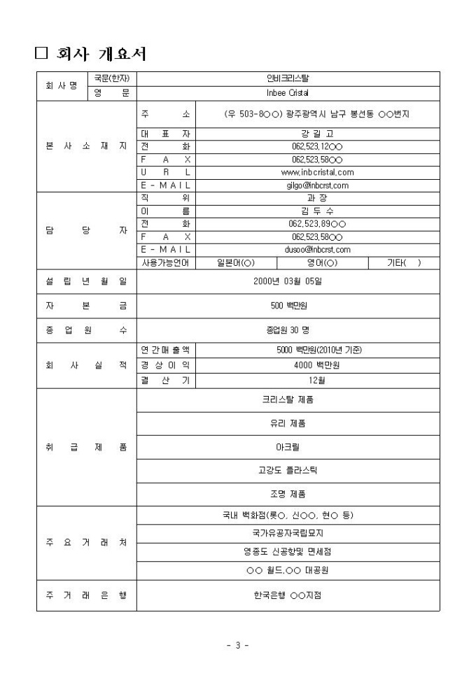 국내 최초! 비즈폼에서 처음으로 '2011년 광주 해외지사화 지원 사업계획서 샘플' 샘플을 제공합니다. 우수한 벤처기업을 위한 사업계획서입니다.