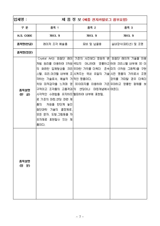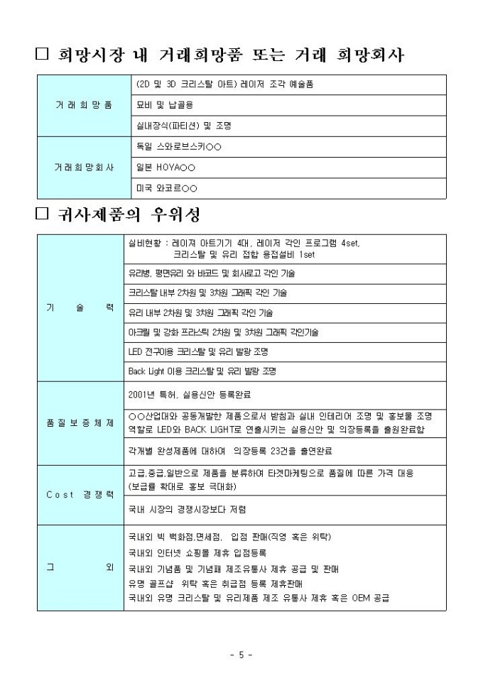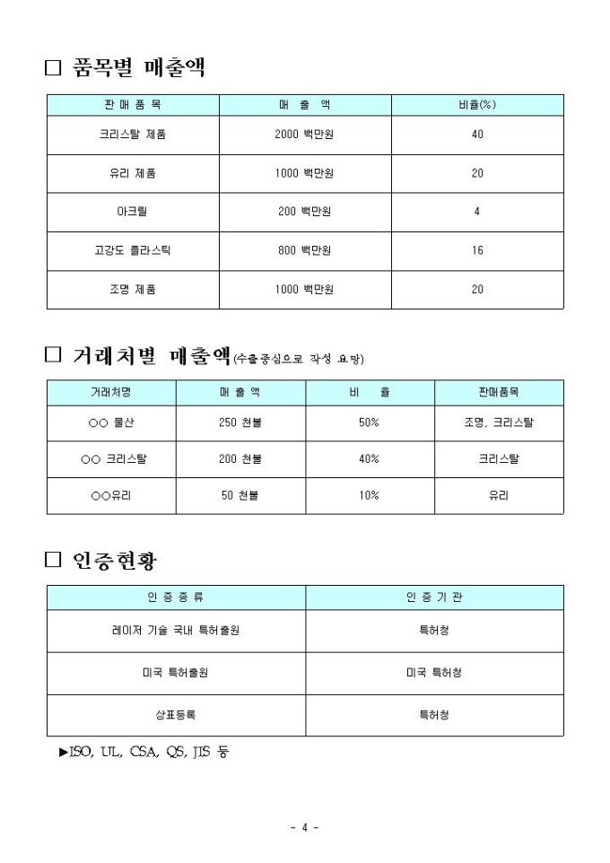 ○ 본 사업계획서 샘플은 제조업(유리) 분야를 기준으로 제작되었습니다.