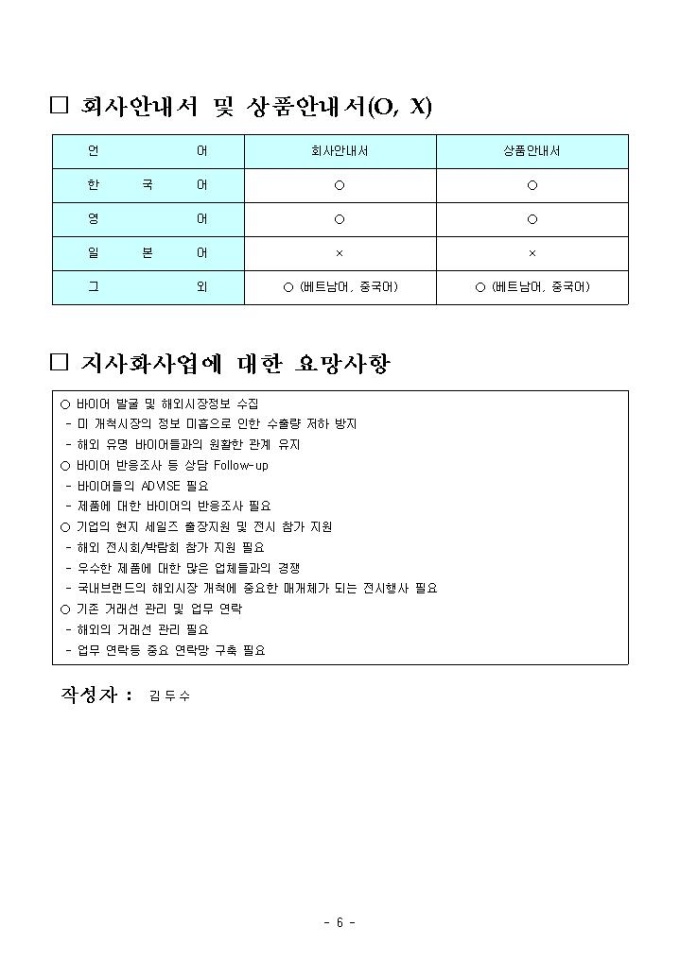바이어발굴 및 해외시장정보 수집 / 기업의 현지 세일즈 출장지원 및 전시 참가 지원