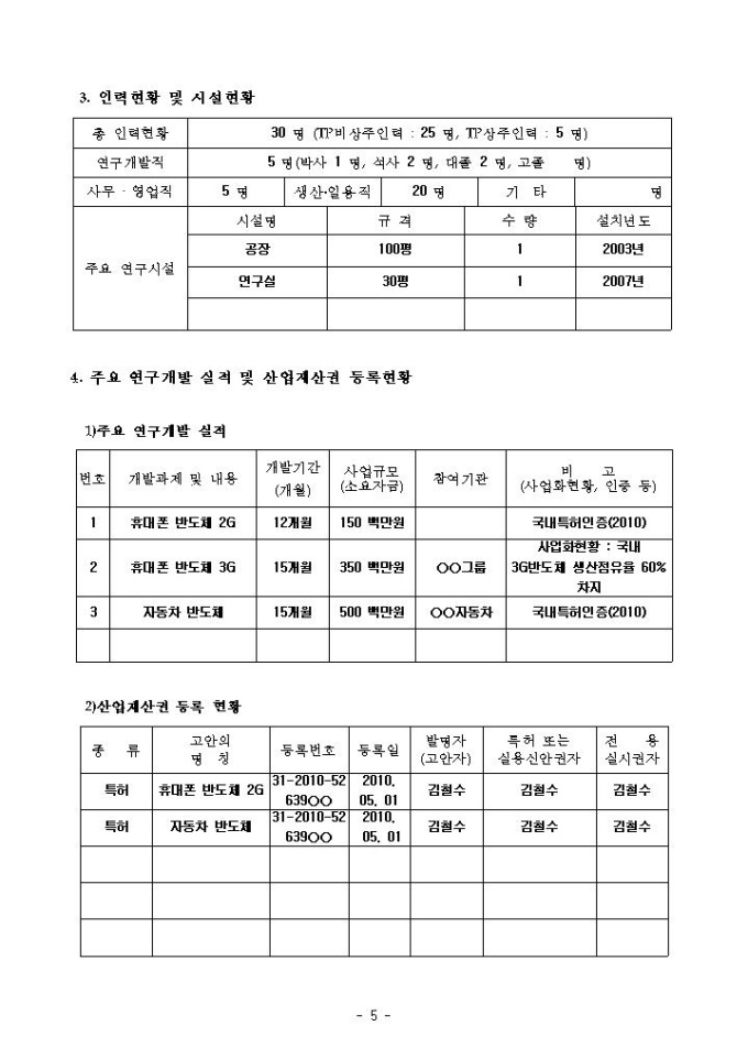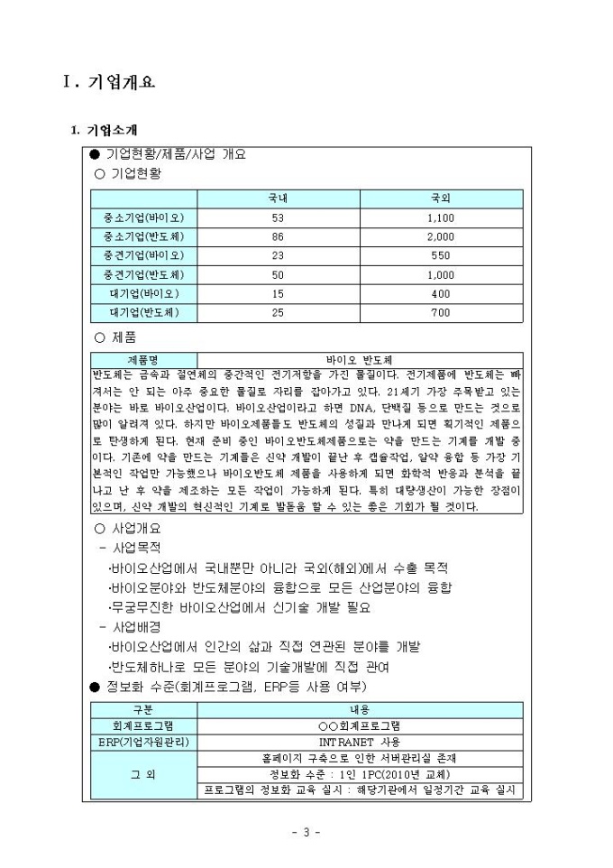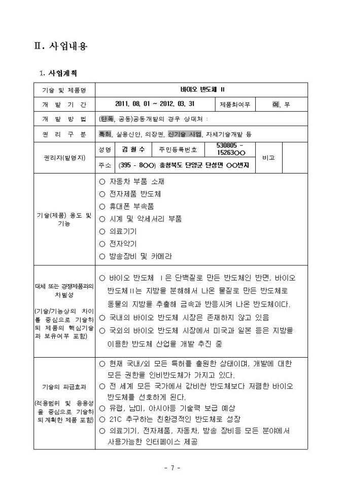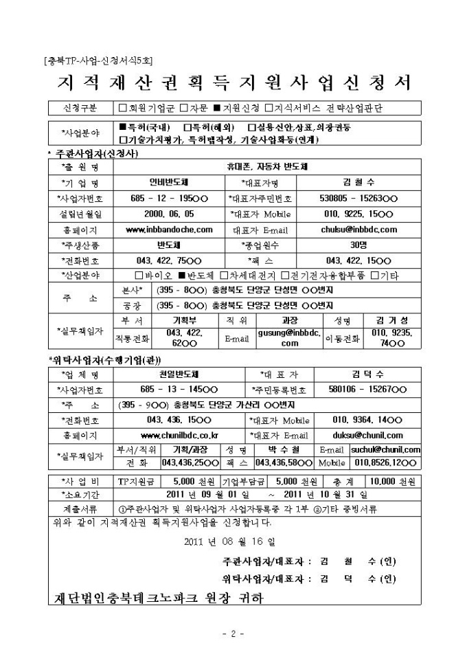 2011년 충북 반도체 우수기업 특허 인증 지원 사업계획서 샘플