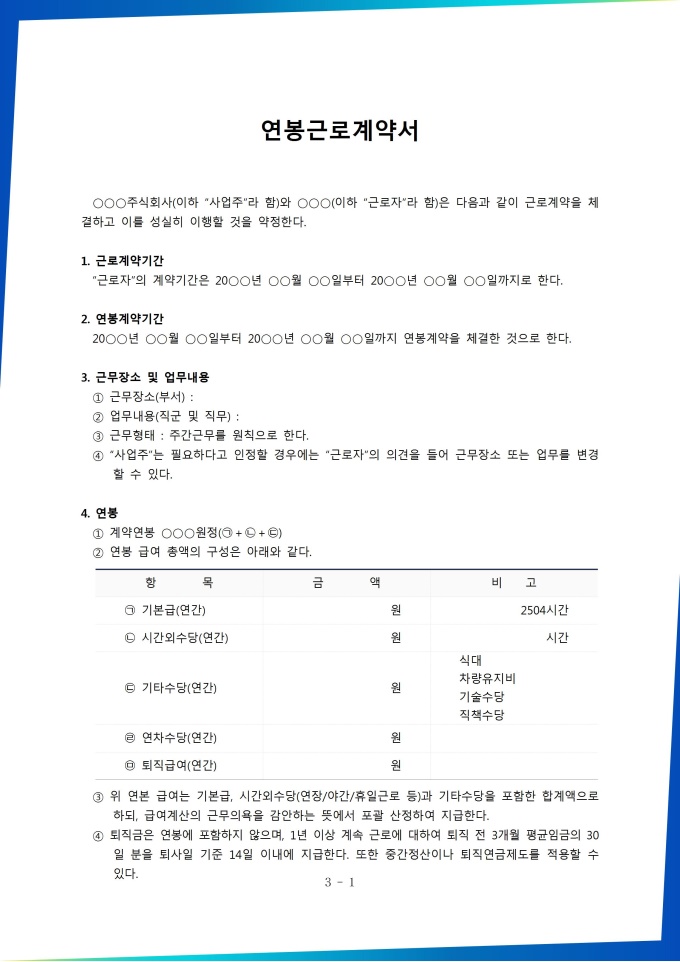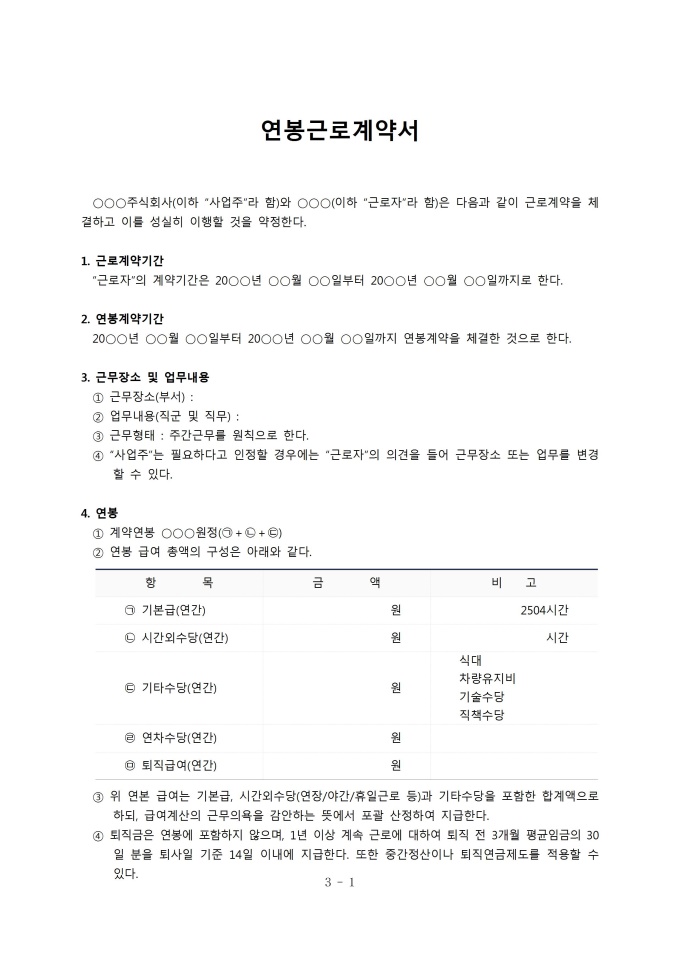 가장 일반적이고 표준화된 연봉제 근로계약서