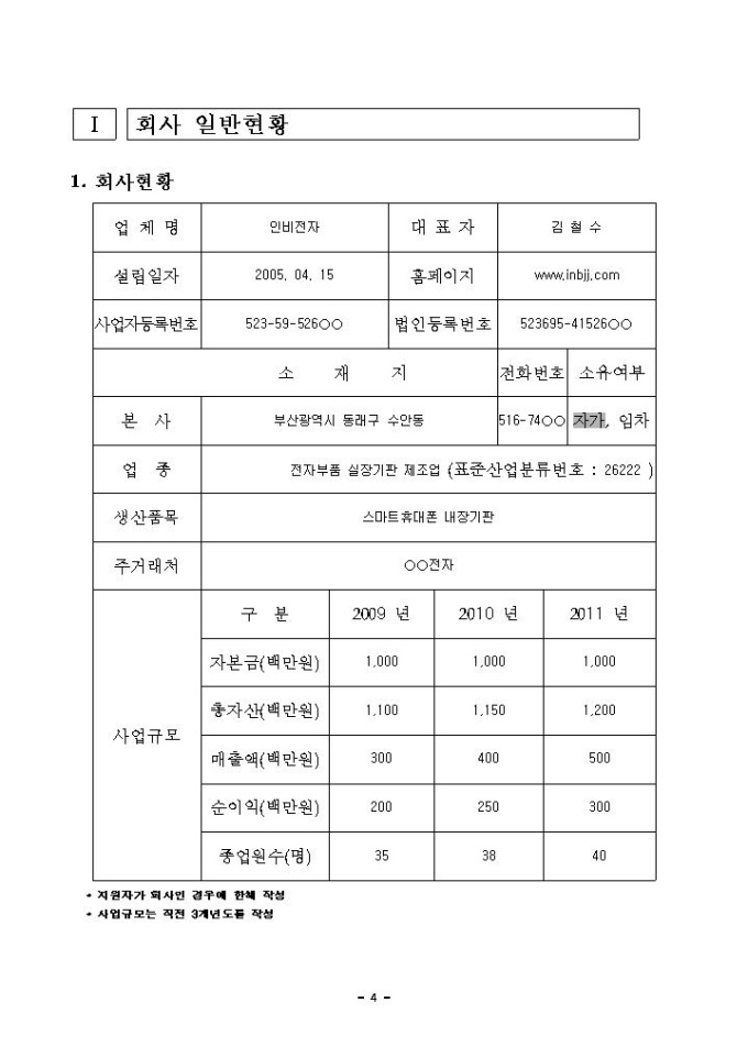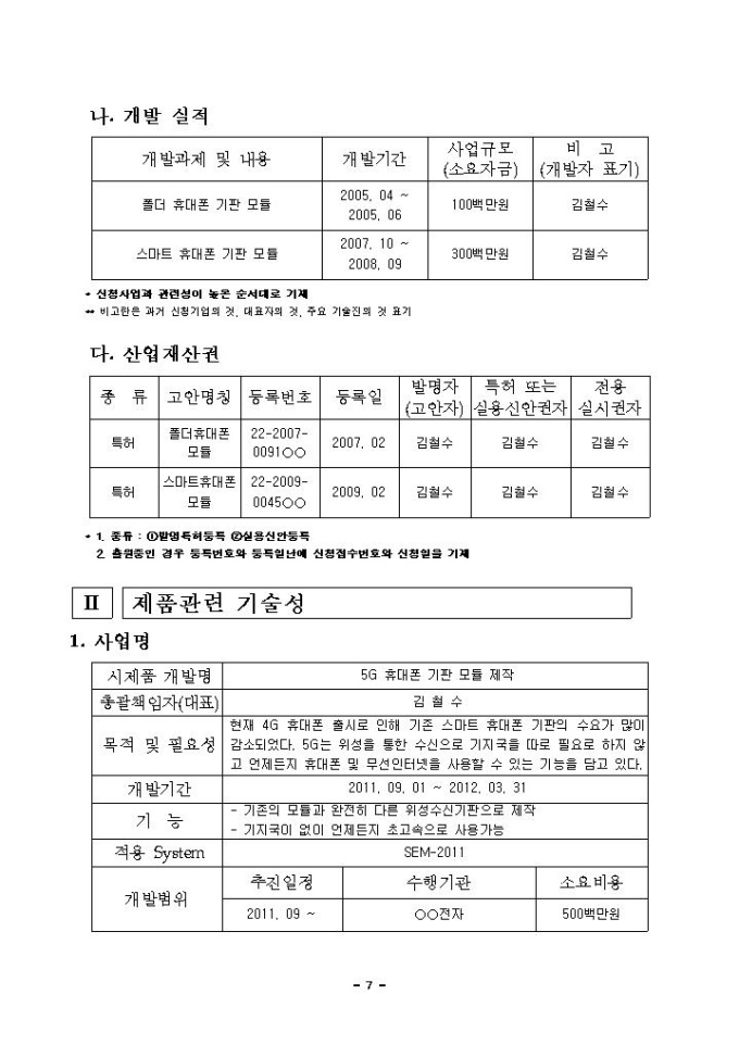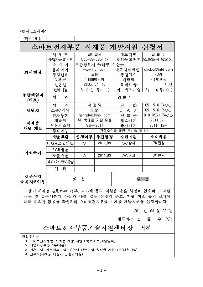 부산 스마트전자부품 시제품 개발 지원 사업계획서 샘플 |