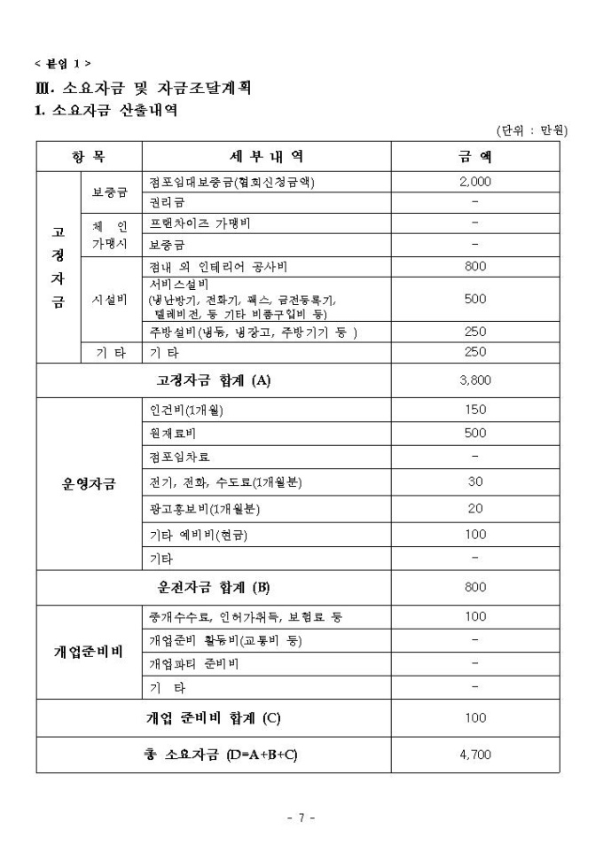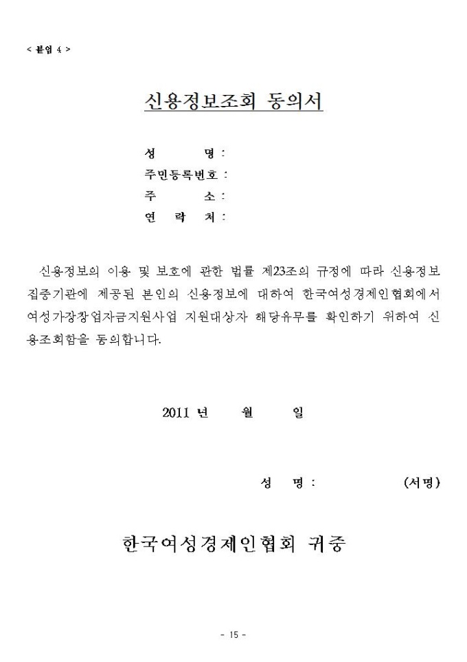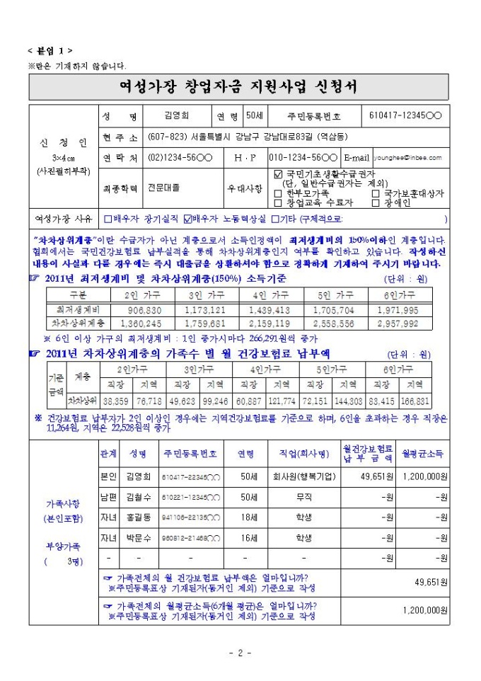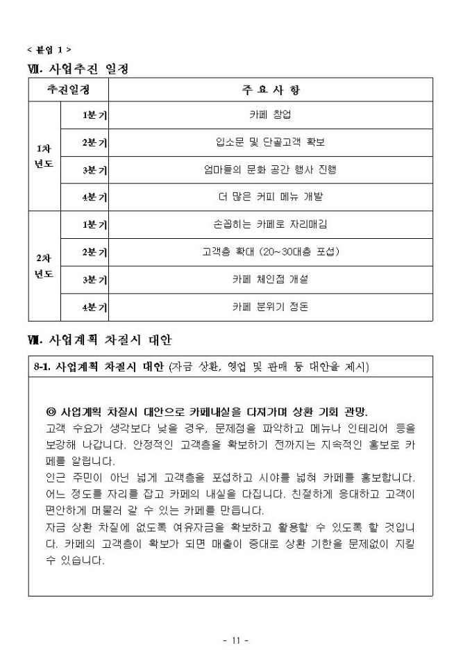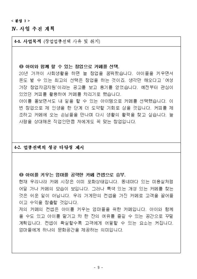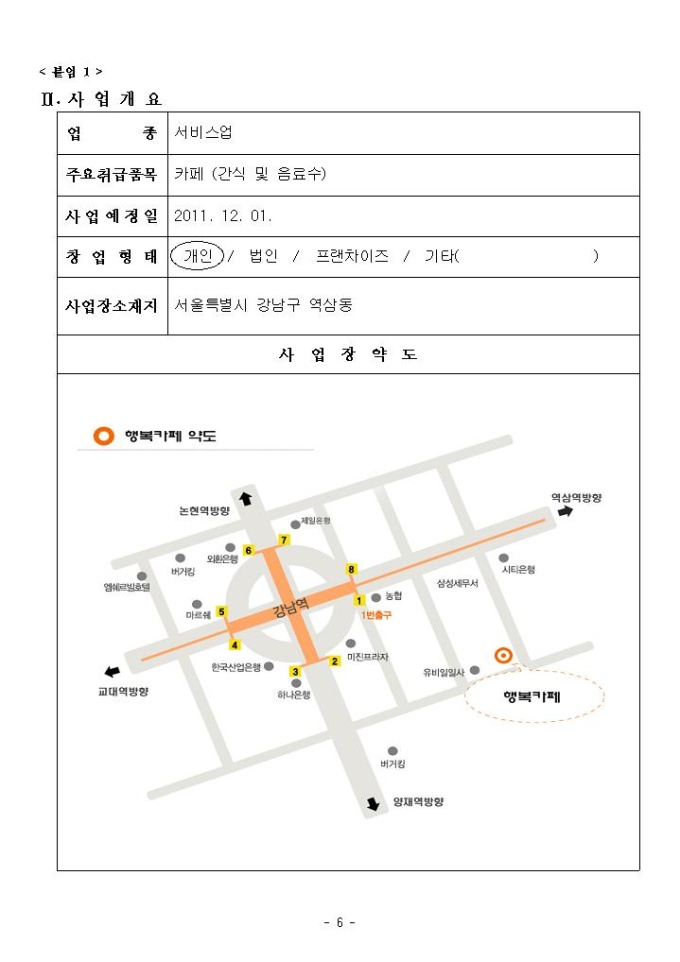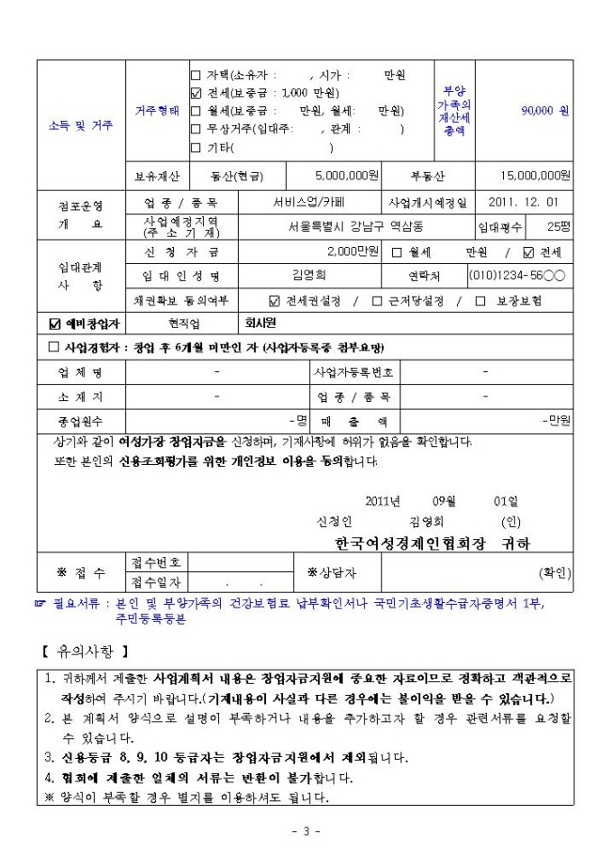 2011년 여성가장 창업자금 지원 사업계획서 샘플 |