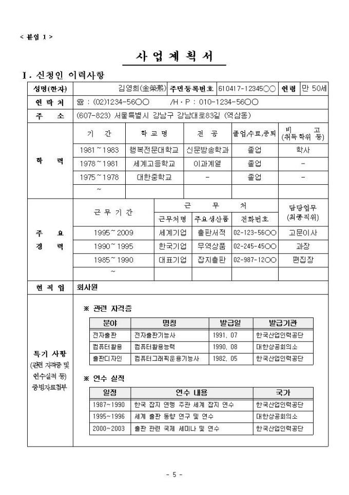 ○ 본 샘플에 사용된 모든 명칭 및 수치는 저작권 보호를 위해 가명처리 및 가상으로 입력되었습니다.