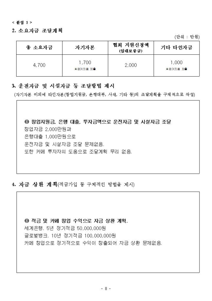 ○ 본 사업계획서 샘플은 서비스업(카페분야)을 기준으로 제작되었습니다.