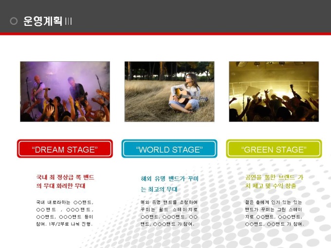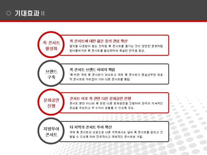 "공연문화 콘서트 분야의 기획서입니다. 다양한 기획서와 제안서에 활용 할 수 있습니다. ※ 워드파일은 원페이지 기획서이며, PPT파일은 프리젠테이션용(발표용) 기획서입니다."