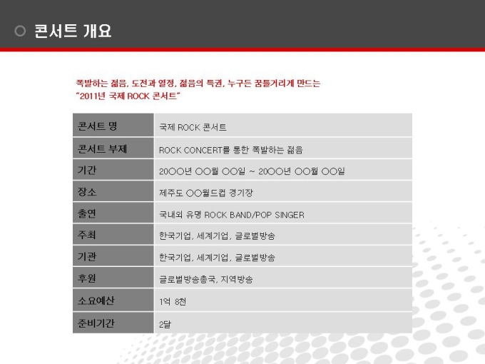 [공연문화 콘서트기획서(원페이지+PPT패키지)]