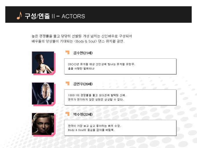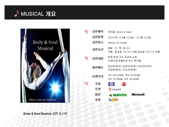 "공연문화 뮤지컬 분야의 기획서입니다.