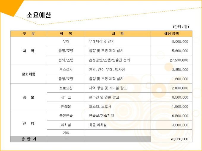 "행사이벤트 축제 분야의 기획서입니다.