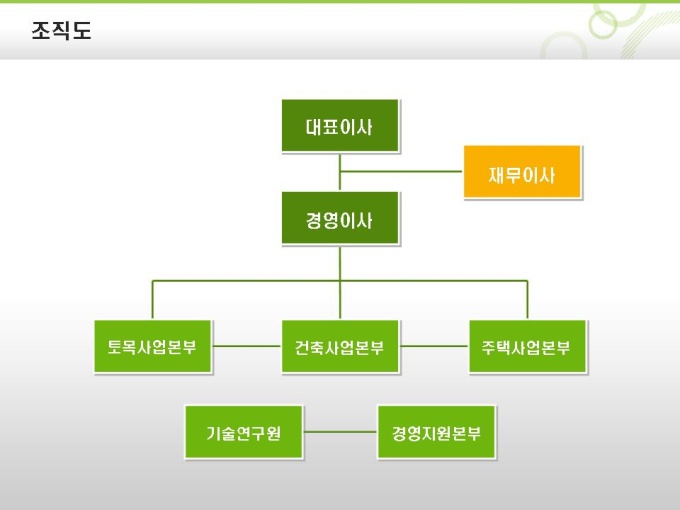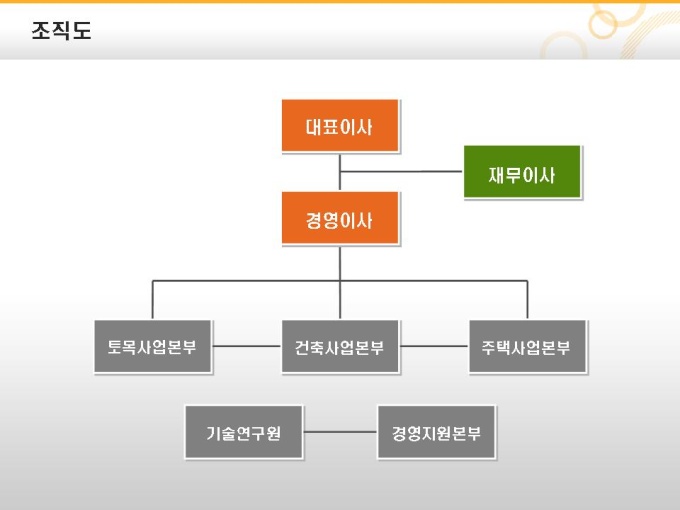 간단한 네모형 조직도 입니다. 다양한 사업계획서에 활용하실 수 있습니다.
