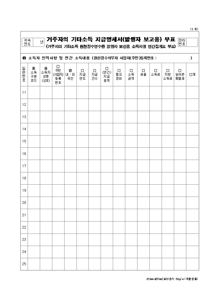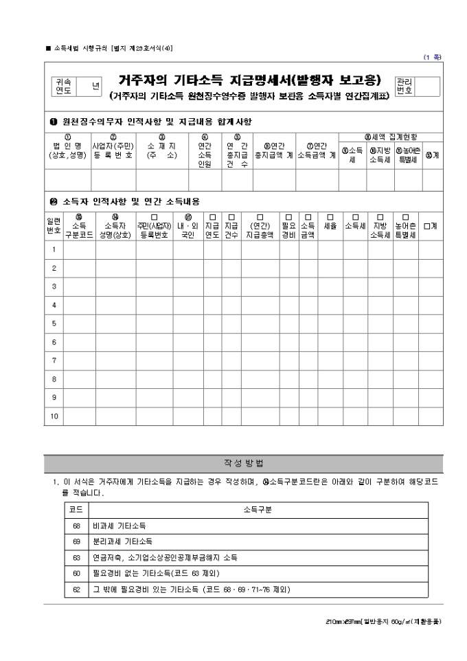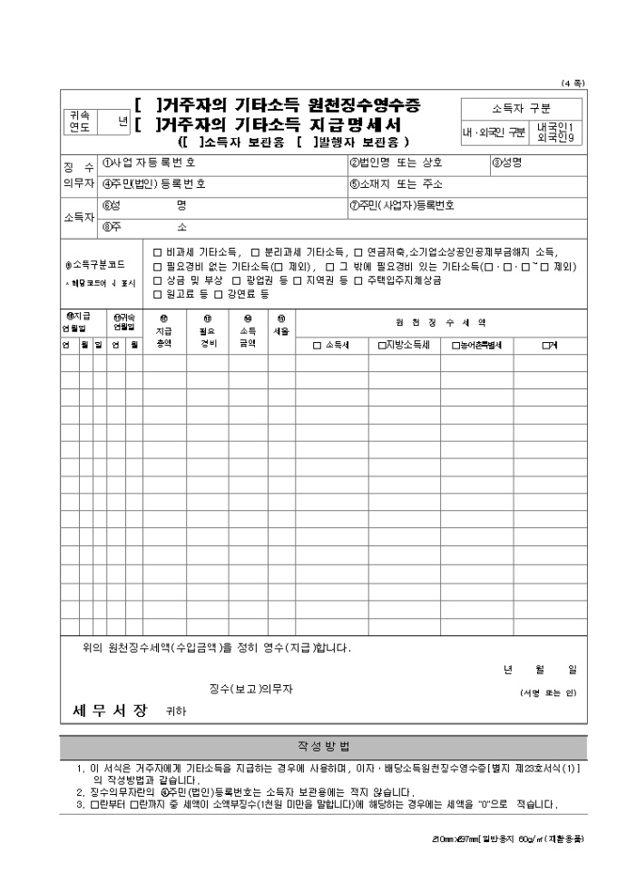 9,000원/월2011년 연말정산, 기타소득원천징수영수증, 기타소득지급명세서입니다.