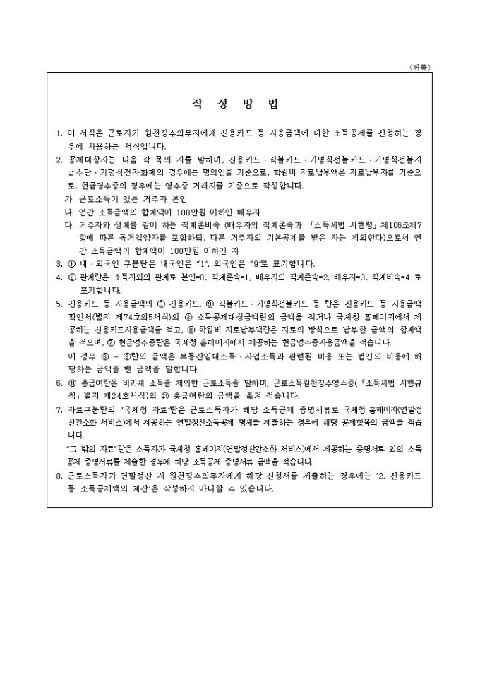 9,000원/월2011년 연말정산, 신용카드소득공제신청서입니다.