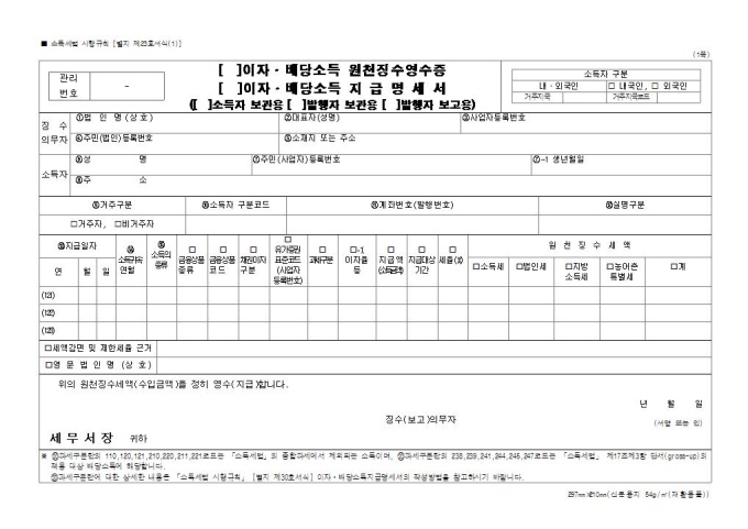 9,000원/월2011년 연말정산, 이자소득원천징수영수증,배당소득원천징수영수증,이자소득지급명세서,배당소득지급명세서입니다.