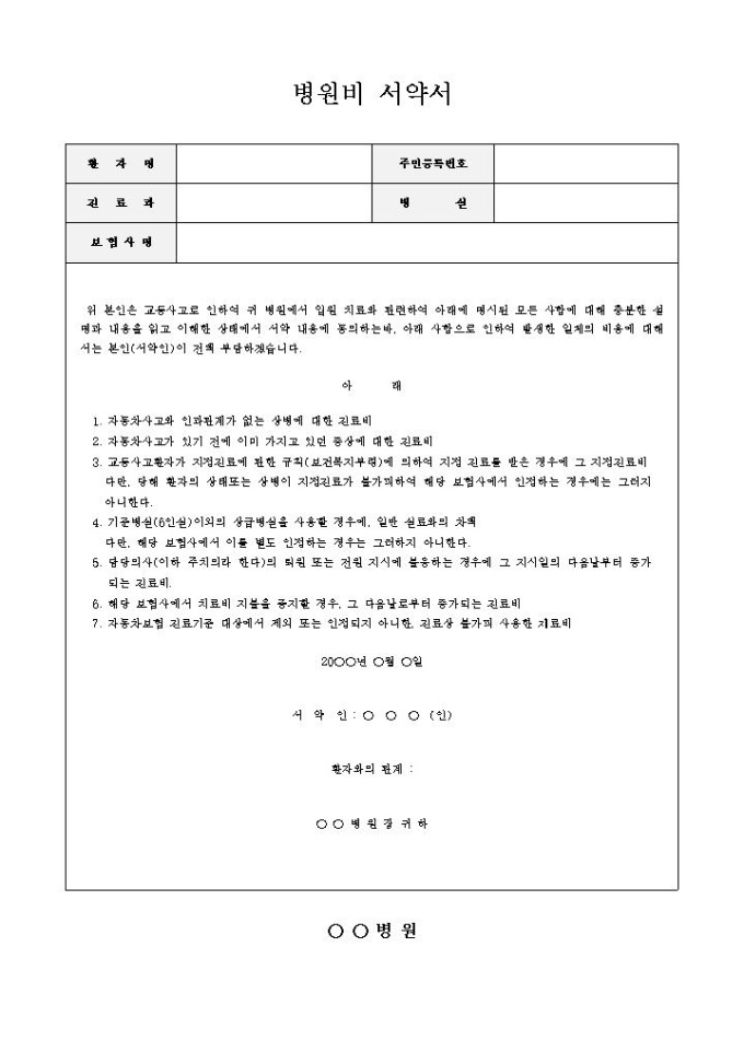 9,000원/월병원비서약서