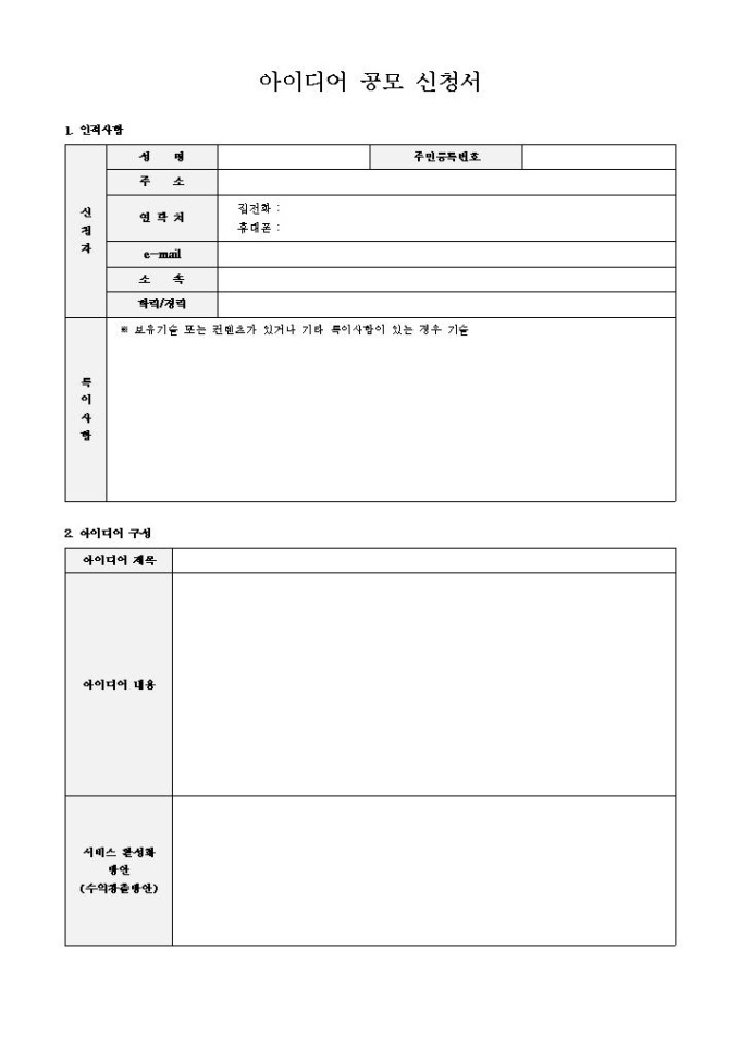 9,000원/월아이디어 공모 신청서
