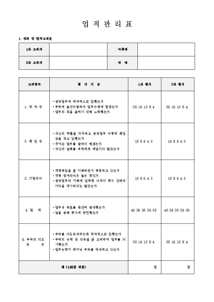 9,000원/월업적관리표