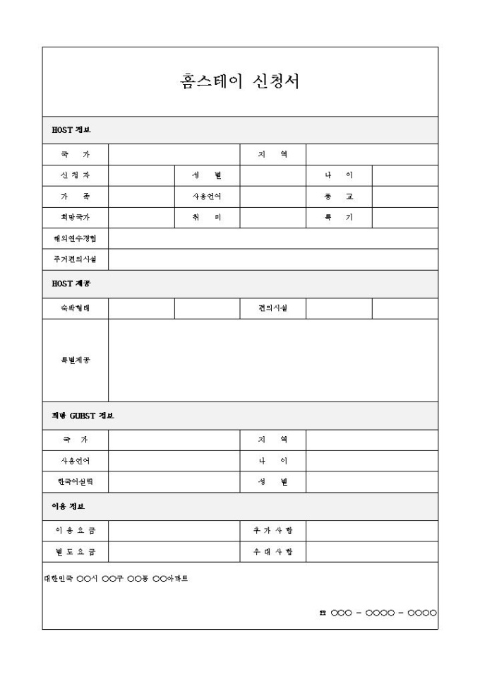 홈스테이 신청서