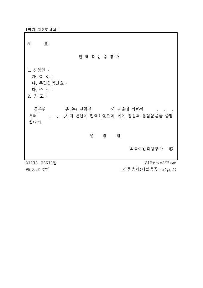 번역확인증명서