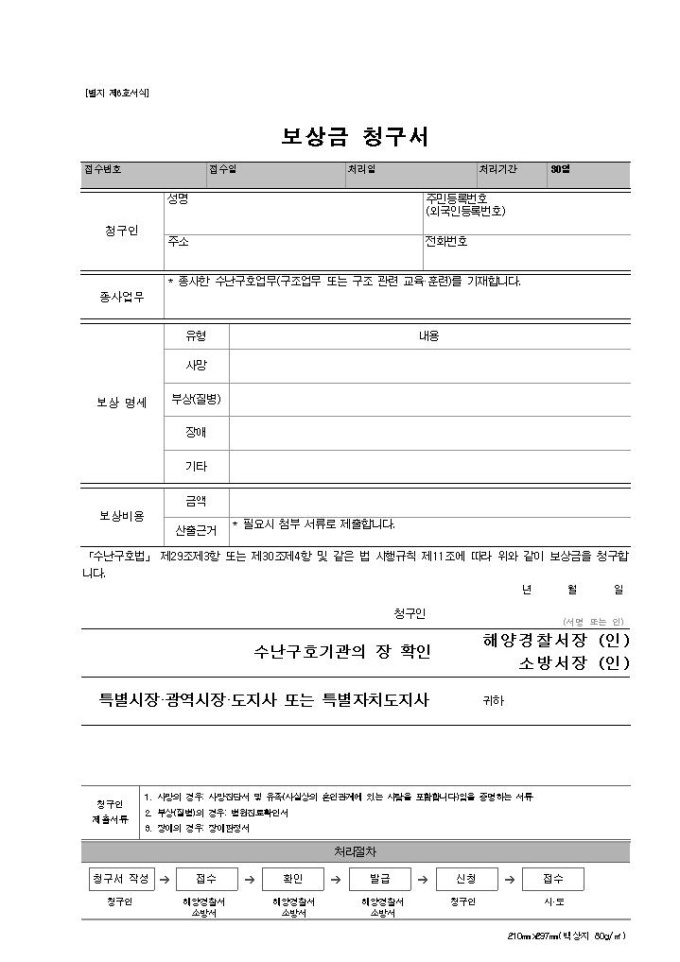 9,000원/월보상금 청구서(시행2012.08.02)입니다.