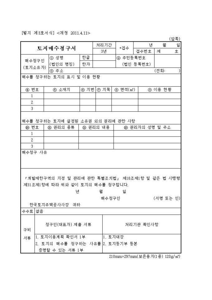 토지매수청구서(시행2012.05.21)