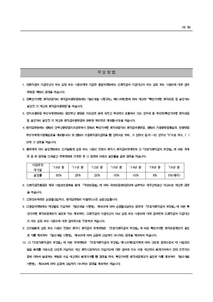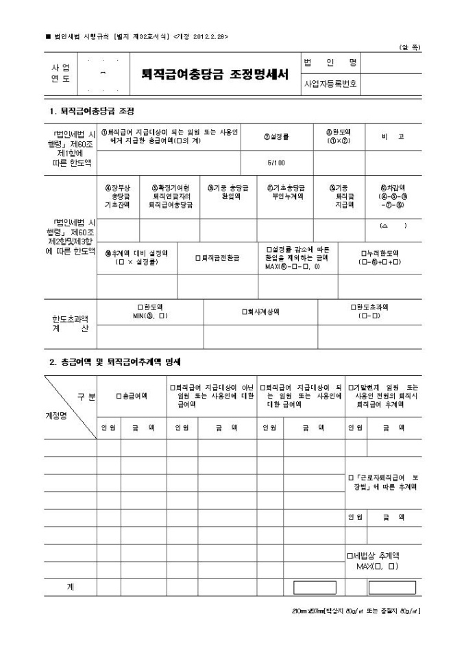 9,000원/월퇴직급여충당금 조정명세서(시행2012.10.02)입니다.