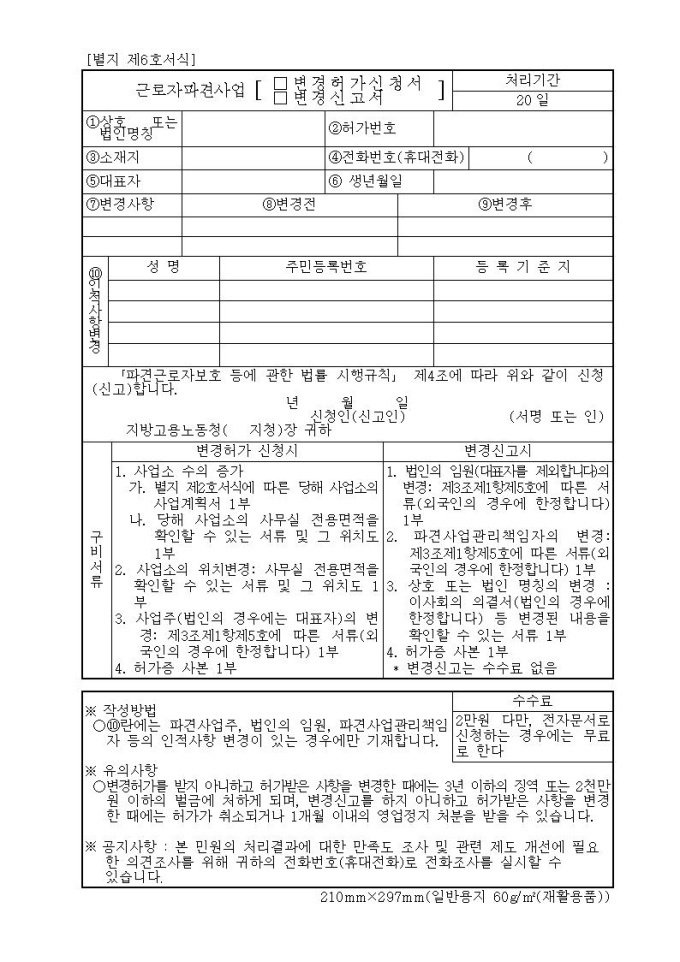근로자파견사업변경허가신청서·변경신고서