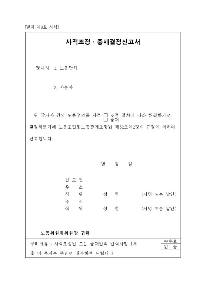 사적조정·중재결정신고서