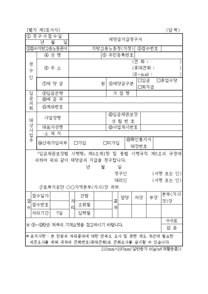 체당금지급청구서