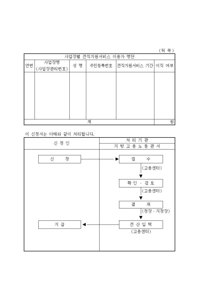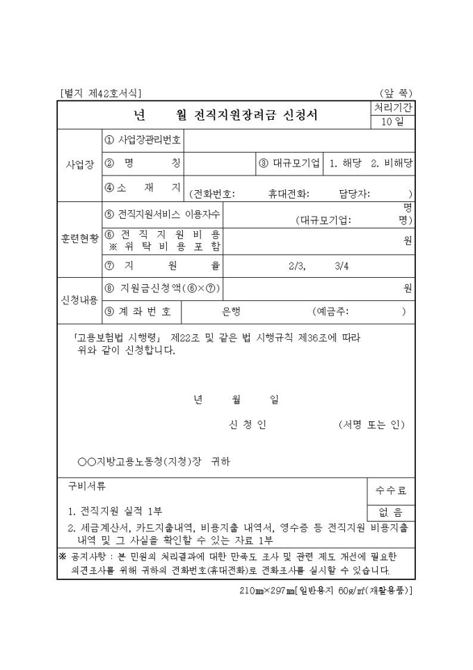 전직지원장려금 신청서