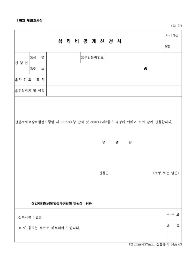 산재보상 심리비공개신청서