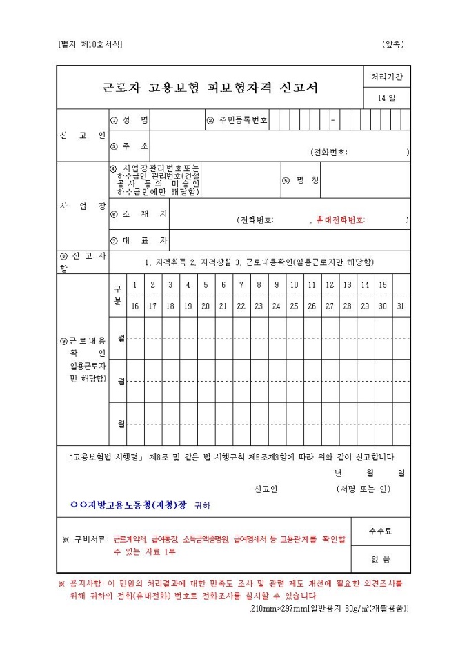 근로자 고용보험 피보험자격 신고서