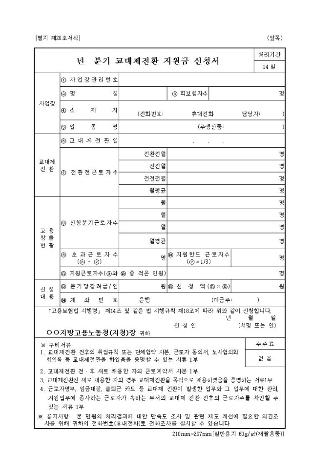 교대제전환 지원금 신청서