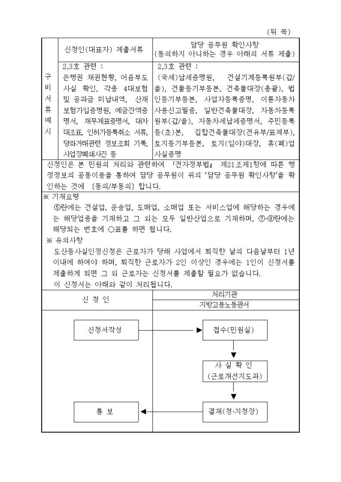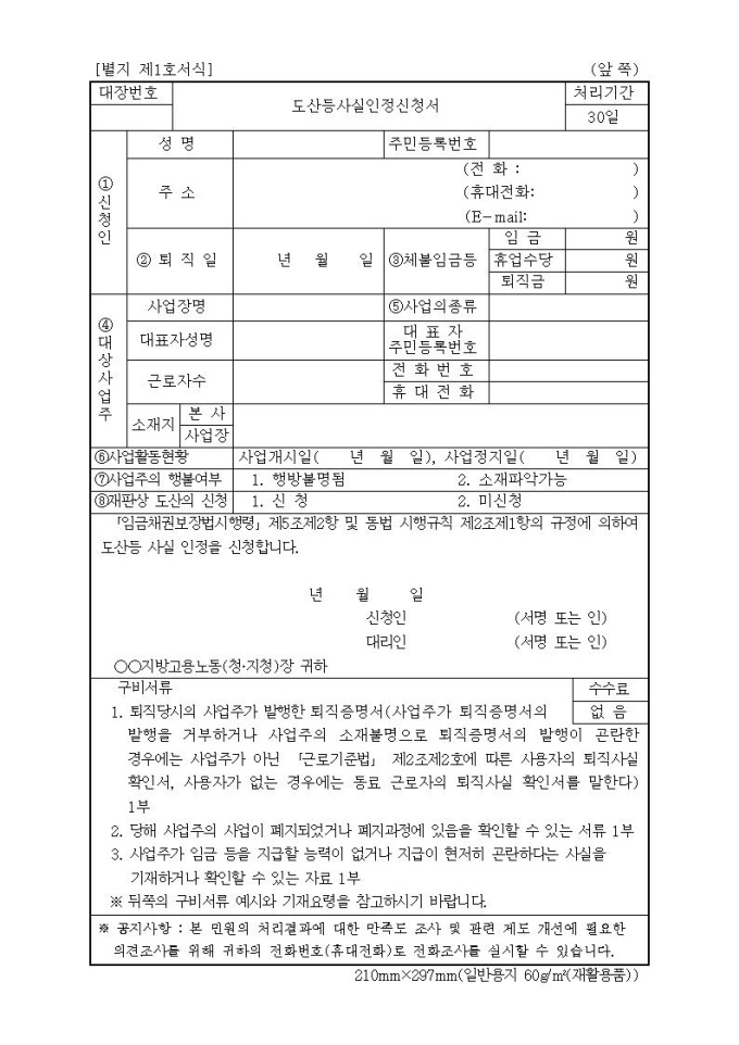 도산등사실인정신청서