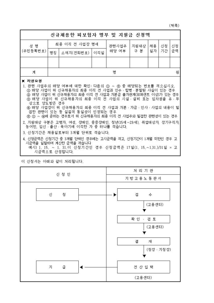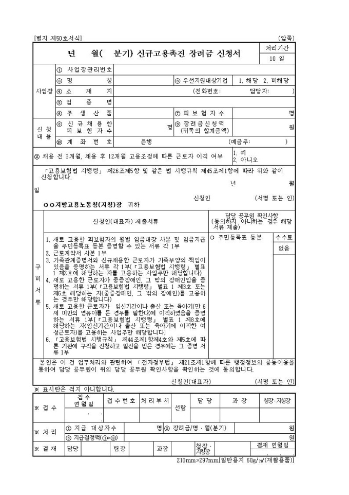 고용보험신규고용촉진장려금신청서