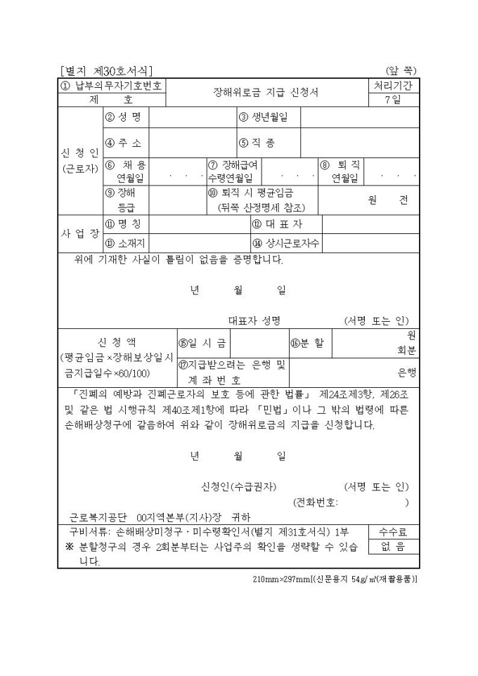 장해위로금 지급신청서