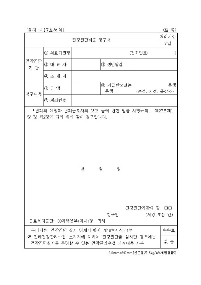 건강진단비용청구서