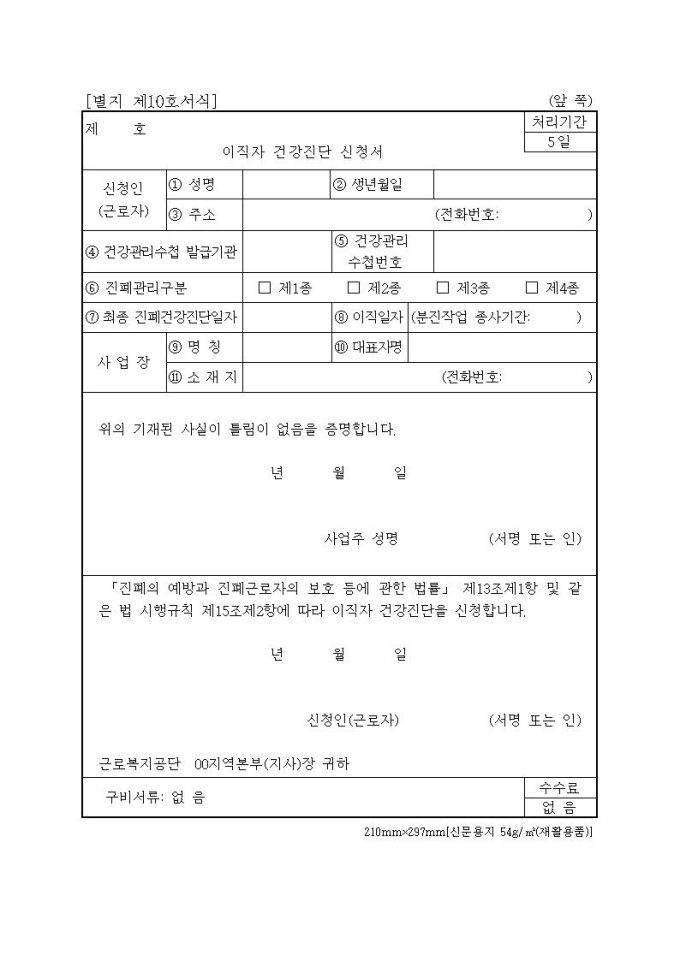 이직자건강진단신청서