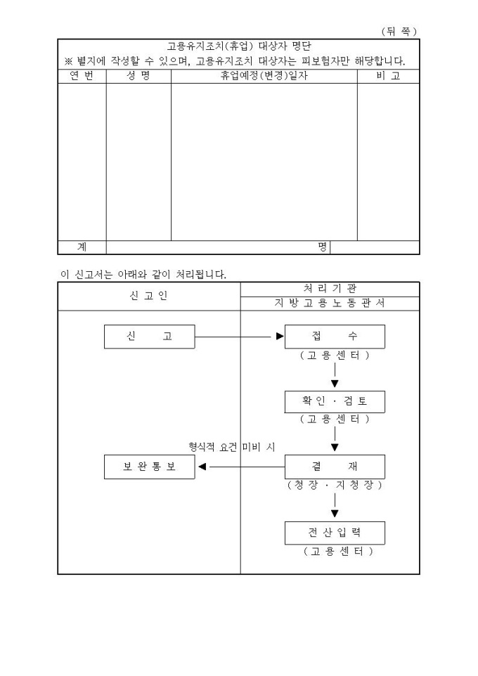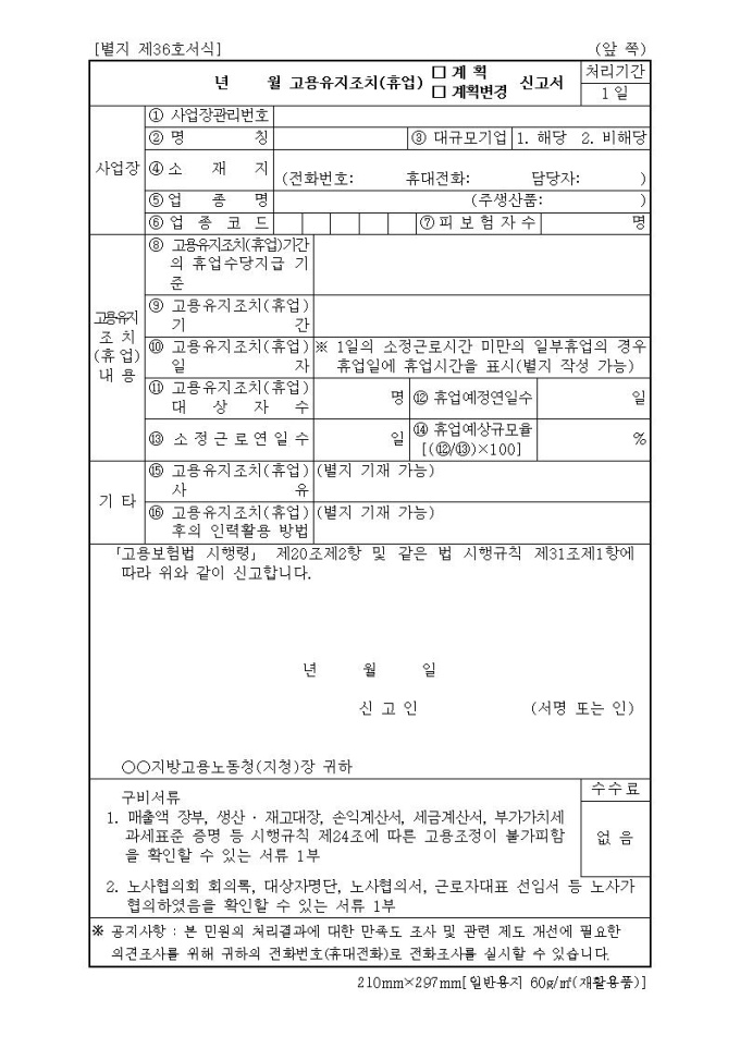 고용보험고용유지조치휴업계획(계획변경)신고서