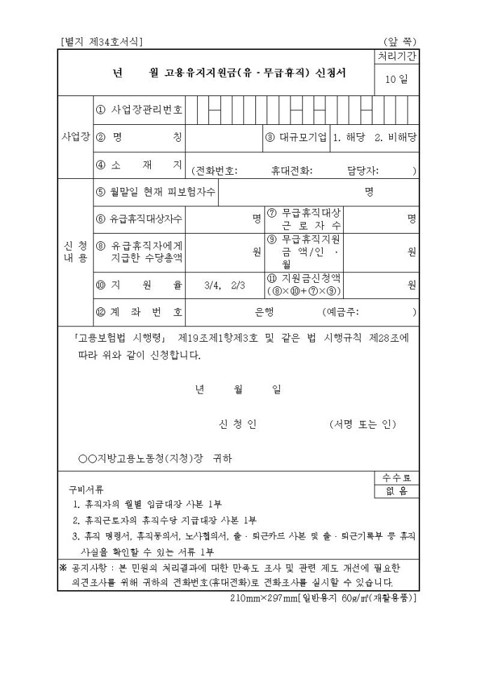 고용보험고용유지지원금(유·무급휴직)신청서