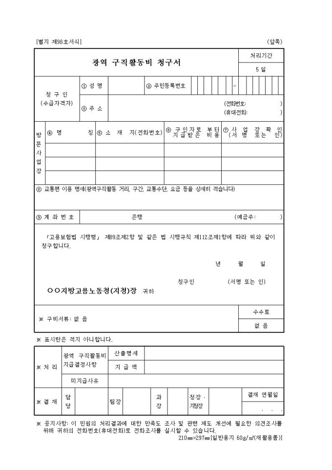 광역구직활동비청구서