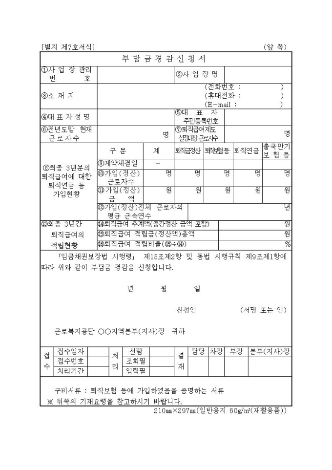 임금채권 부담금경감 신청서