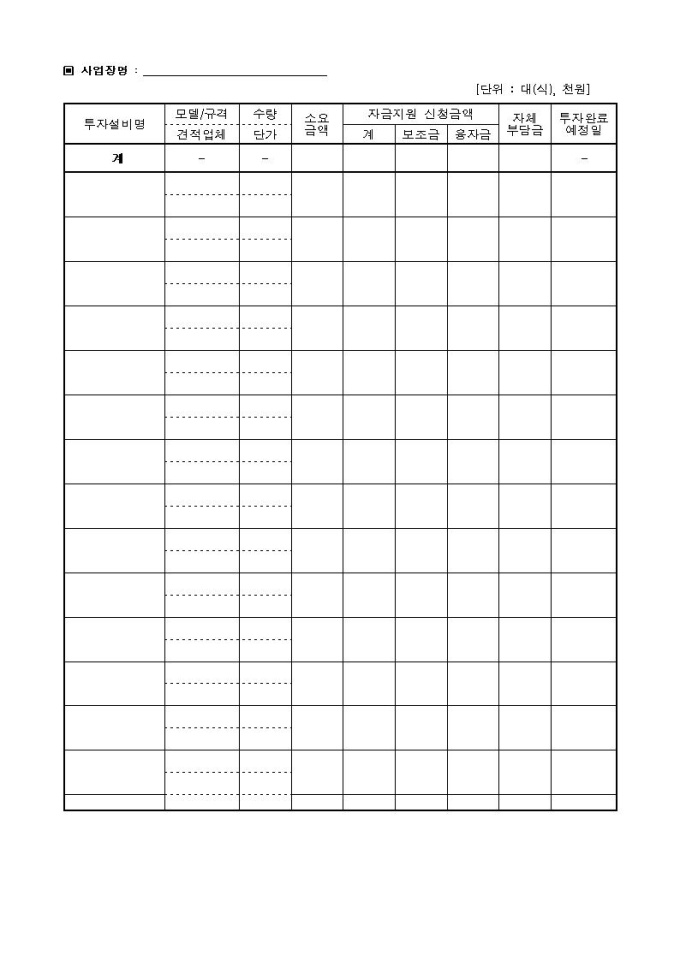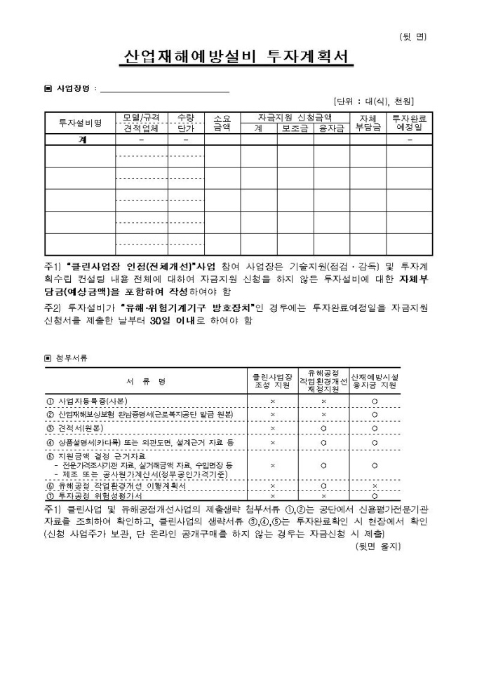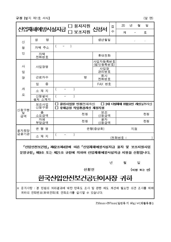 산업재해예방시설자금 □ 융자지원 □ 보조지원 신청서
