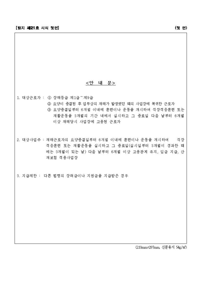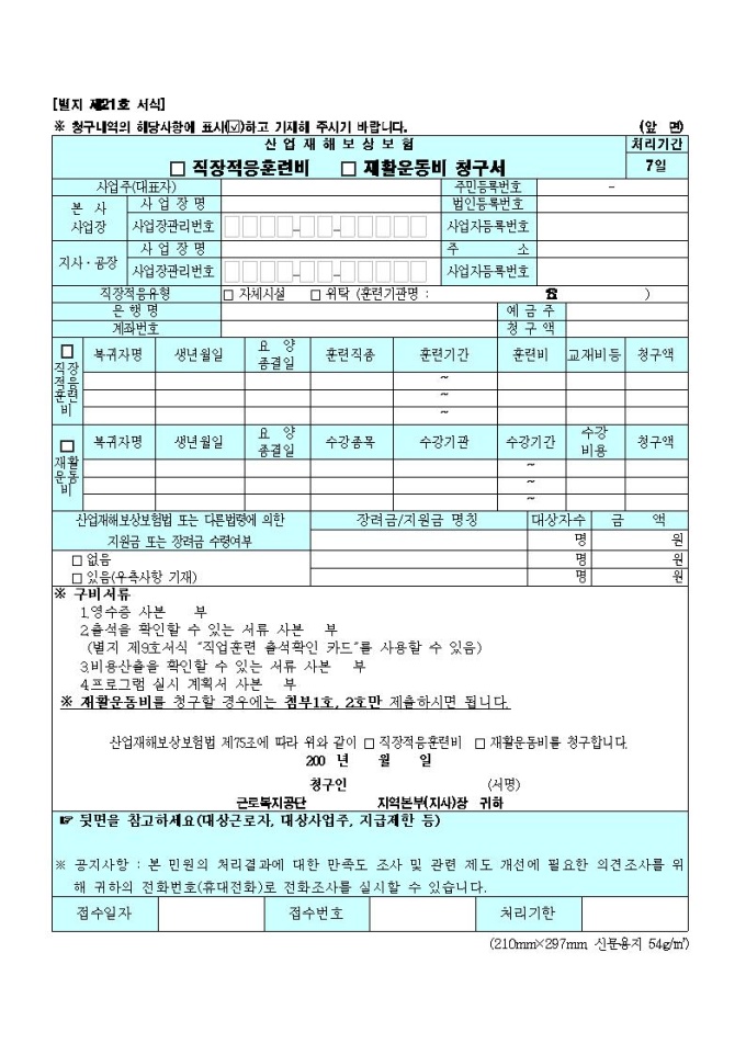 산업재해보상보험 □직장적응훈련비 □재활운동비 청구서